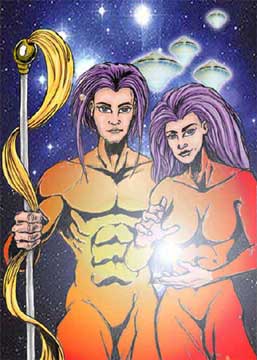 Hailing from the starsystem of the Pleiadies, this ultra-advanced race of humans have been contacting many individuals on the Earth for years. Through channelling, they have sent their message of peace and transcendence, as well a subtle warnings of the "reptile presence." These beings often will visit the planet and are the inhabitants of many of the saucer shaped discs seen by thousands of Earth inhabitants. These beings are members of the Galactic Council along with the Andromedans and others. Currently, many Pleiadians are aligning themselves with the movement to intervene in the Earths plight. Though the Earth must ask for help before an action may proceed. |
